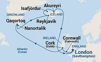 We are on our way to Greenland, an iceberg was seen while we were at dinner but unfortunately we missed it.